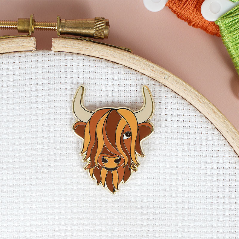 Celebrate your cross stitching with this shaggy Highland cow needle minder!
